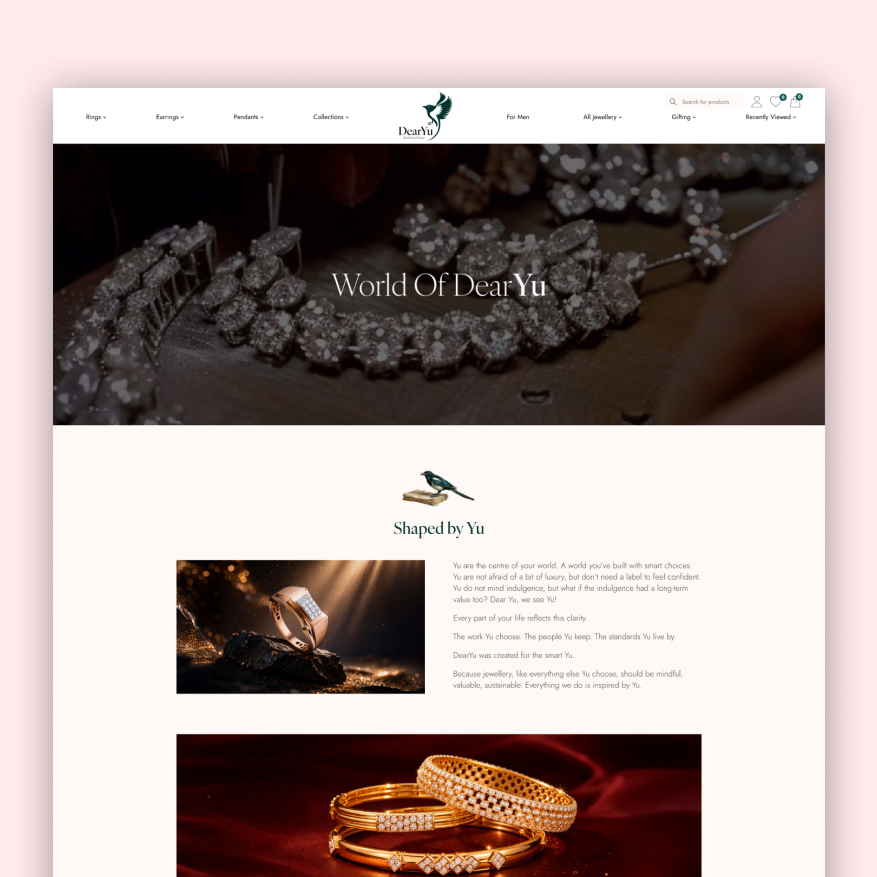 We designed a visually engaging and emotionally driven website that reflects DearYu’s brand identity while ensuring a smooth and intuitive shopping experience. The content and layout were structured to highlight personalization, guide users effortlessly through product discovery, and reinforce the brand’s emotional connection.