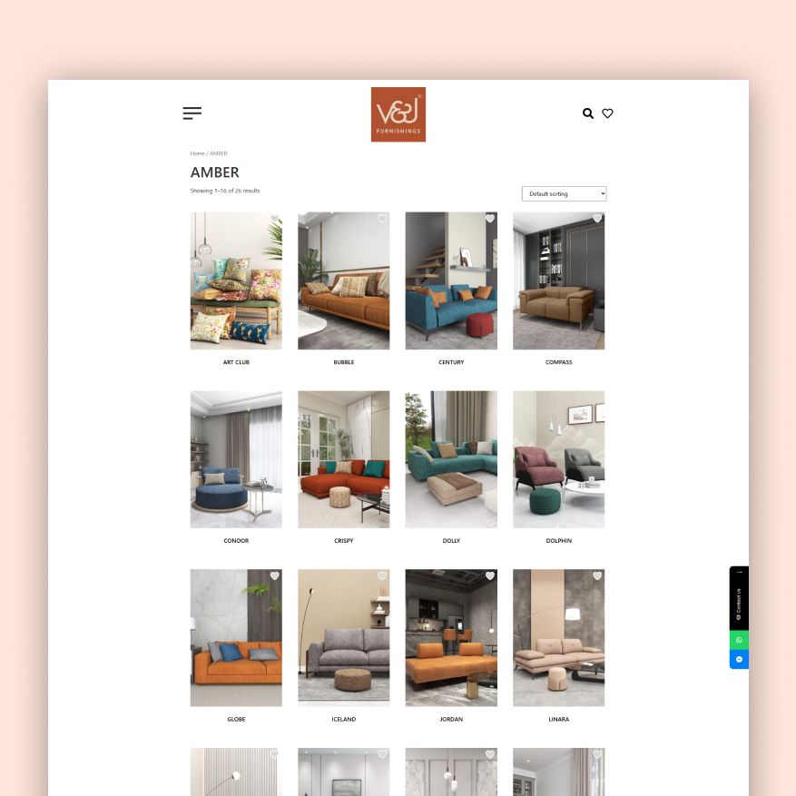 The redesigned website clearly positions V&J Furnishings as an industry leader in home furnishing textiles. Through intuitive categorization, strong visual presentation,